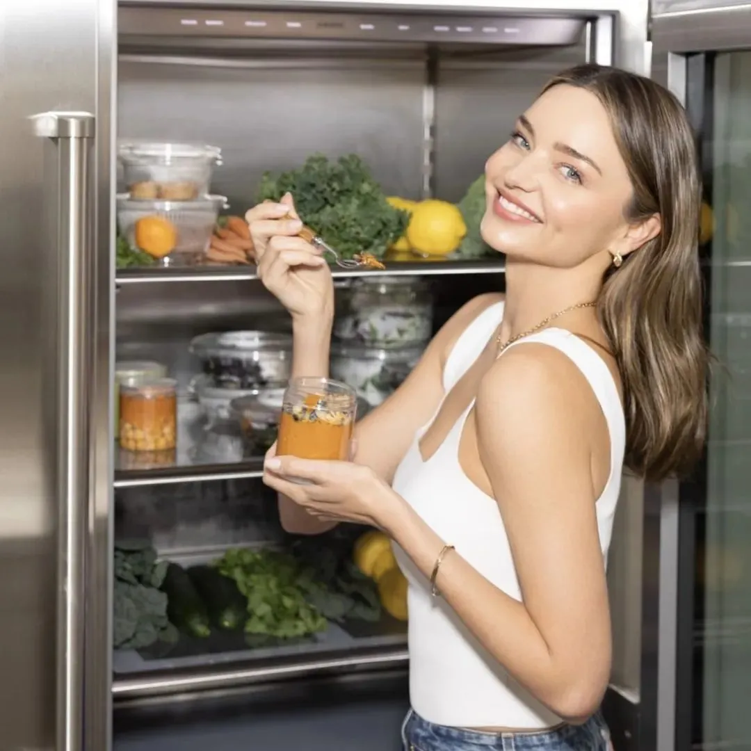 今年生了第四胎的超模辣妈Miranda Kerr,一直对健康饮食有自己的小技巧,比如她特别喜欢混合绿色蔬菜和苹果、菠萝、梨等水果,制成营养丰富的蔬果汁。Kerr说过自己每天喝32盎司冷榨芹菜汁,“芹菜可以碱化你的身体系统”,维持健康的消化道。她也因一贯容光焕发的肤质和灵活健康的身体而自信动人。