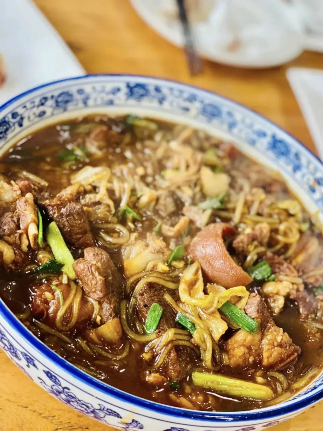 历经两个半小时炖煮,焖制入味。小锅爆炒,配上筋道粉丝,一道肥嫩鲜美的贵生红烧羊肉就算大功告成。