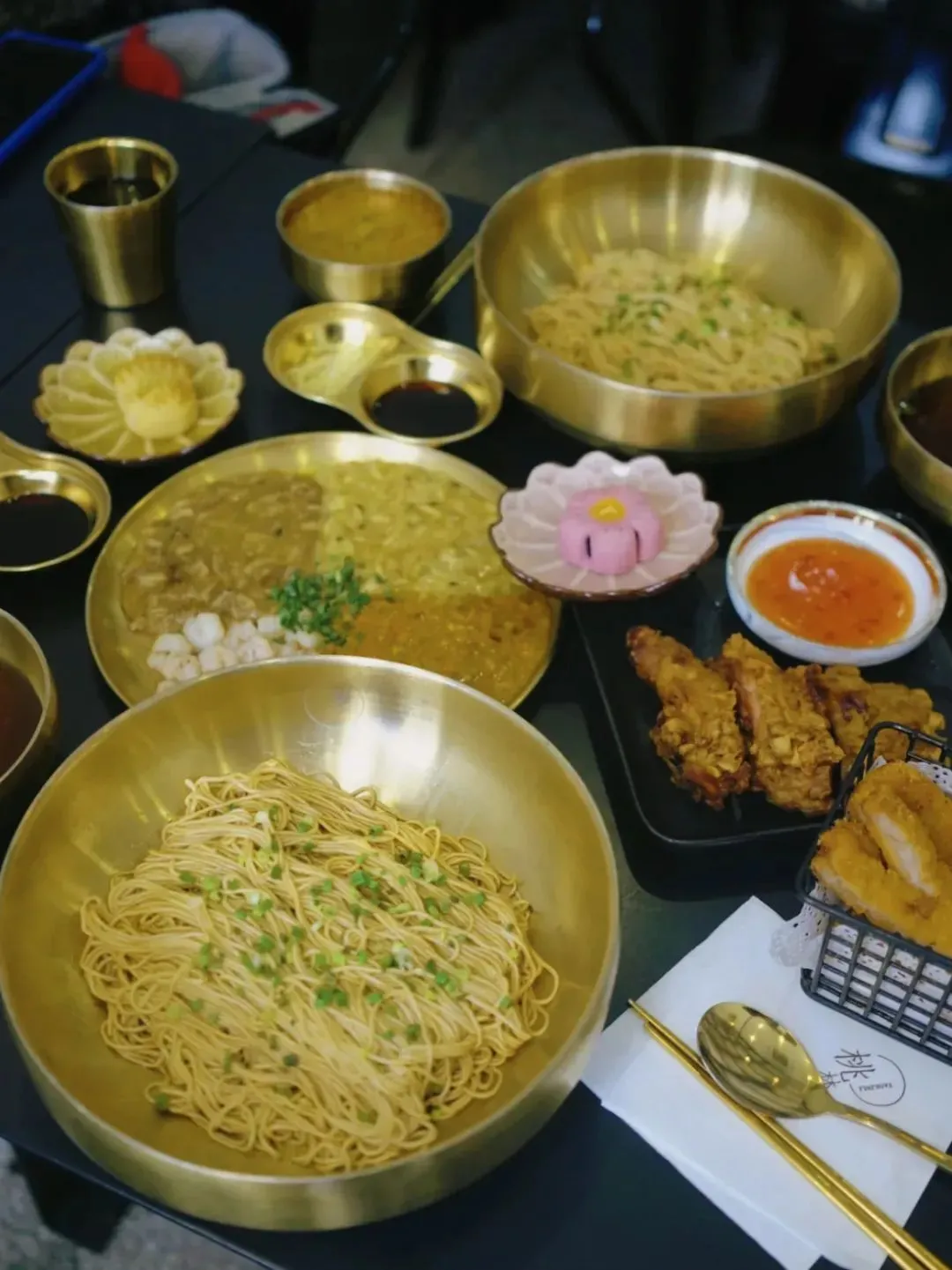阿球到店就点了招牌的井梅蟹粉面。套餐形式,非常精致美观。我们选的小碗,但蟹粉分量也超多。旁边还有小碗可要协助搅拌避免起坨。