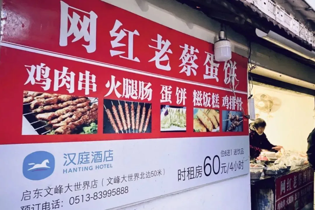 这条街很多卖蛋饼的摊子,阿球直奔老爷爷的店铺。开了好多年,写着网红老蔡,但味道很家常。