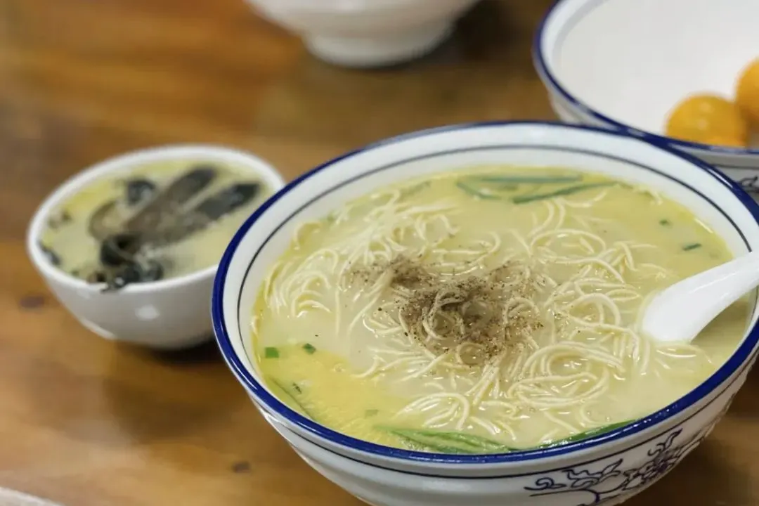 他家所使用的长鱼均为野生,肉质鲜美、营养丰富,汤料也都是人工熬制而成,分为排骨红汤/鱼白汤两种。