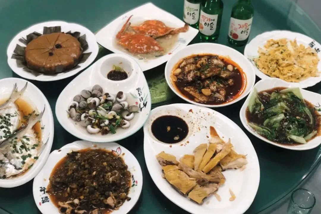 油浸带鱼、红烧黄鱼、椒盐皮皮虾、盐水香螺、梭子蟹、葱爆海蟹、铁板文蛤、马鲛鱼茄子、吕四海哲......各式鲜味不停歇。