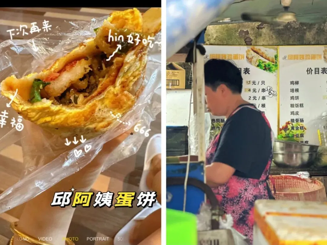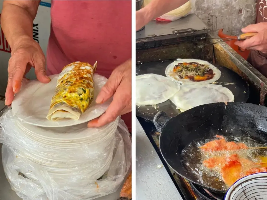 当地做蛋饼的小摊随处可见,其中邱阿姨蛋饼和老蔡蛋饼去的人比较多。但真的要问起哪家最好吃?90%的本地人会回答你:“当然是自家楼下的!”