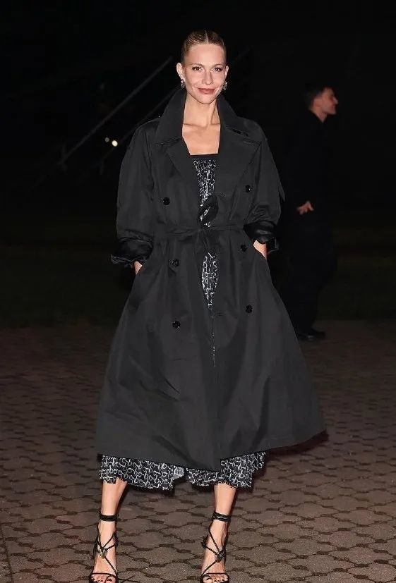 随着天气变暖,也有免不了需要脱下风衣的场合,这时候,在廓形风衣里面搭配连衣裙或者半裙也是不错的选择,不仅方便随时穿脱,也可以让整套造型看起来更加精致优雅,同时增加层次感。