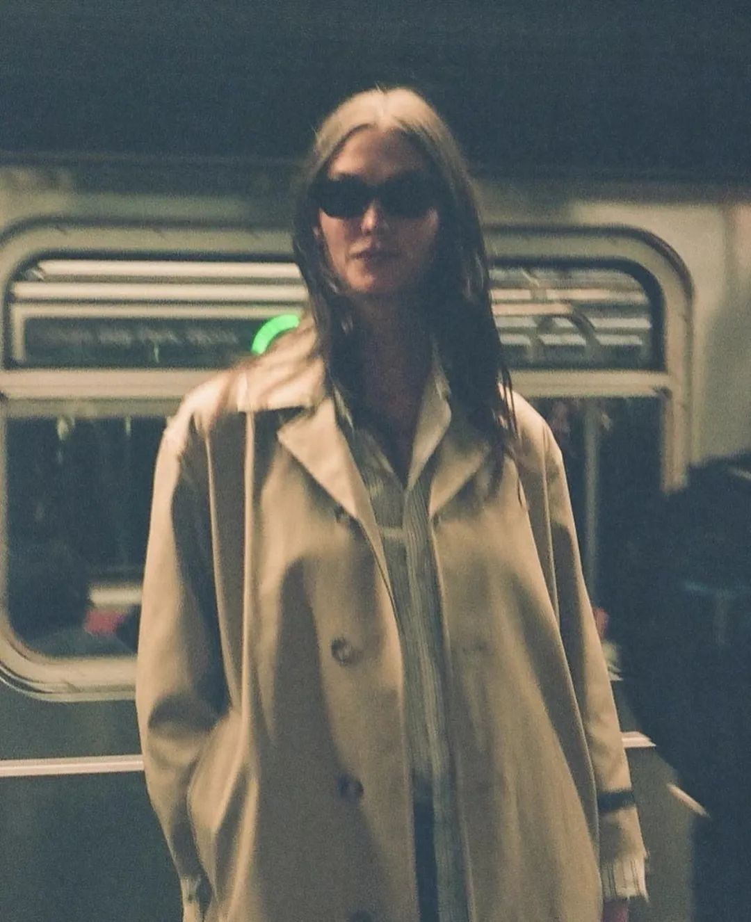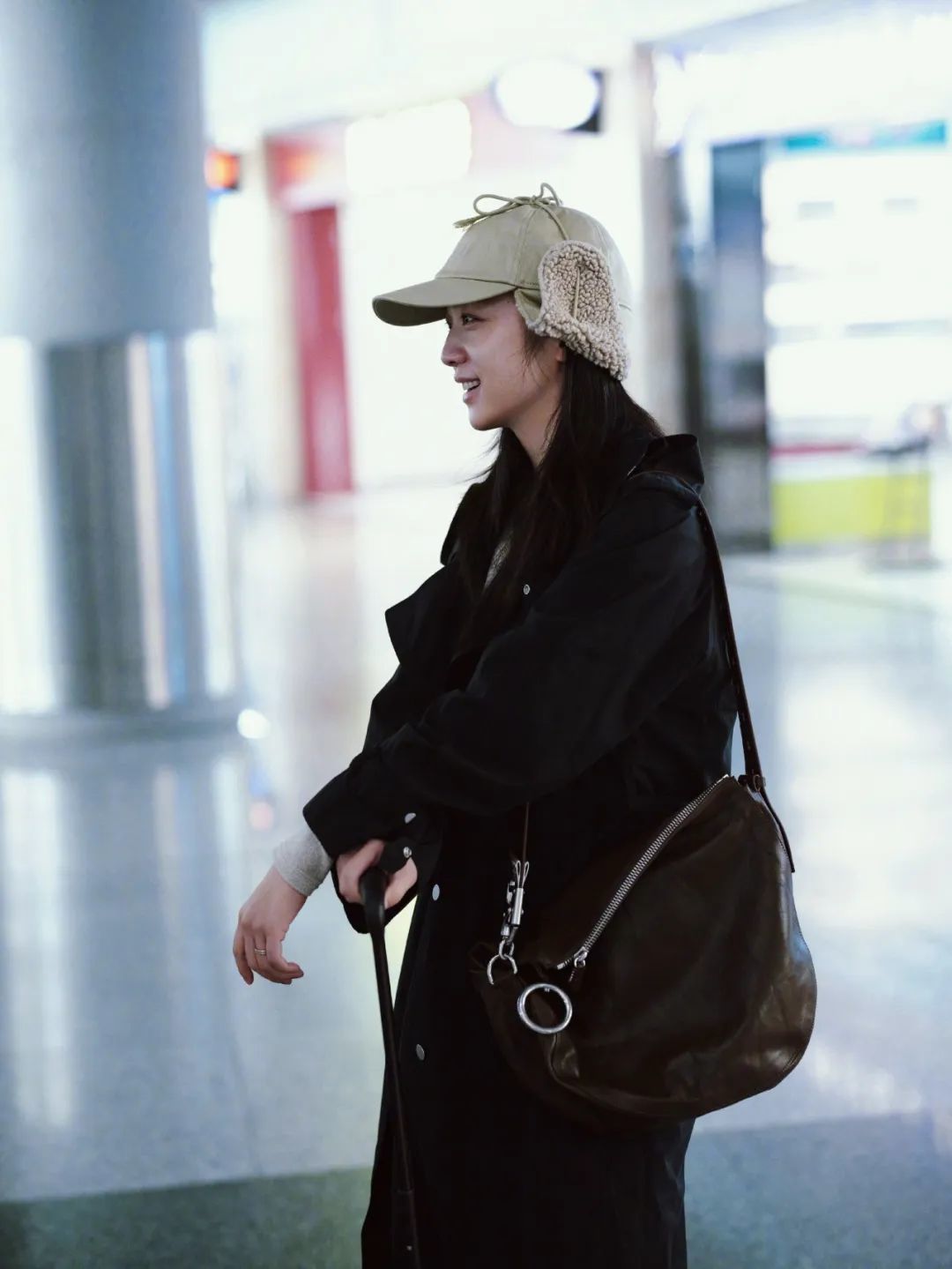 和她一样出席同一场Burberry活动的汤唯,机场穿搭也选择了风衣,搭配绿色的雷锋棒球帽,随性中带着文艺气质。