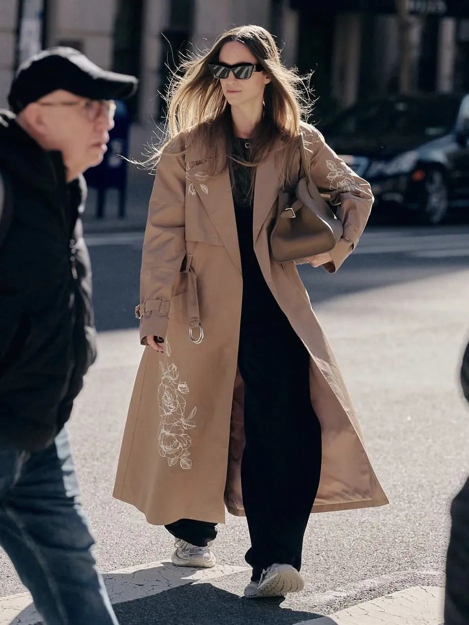 想要尝试休闲风,也可以试着在风衣里面穿运动套装或者是卫衣,也可以试试穿一双运动鞋。