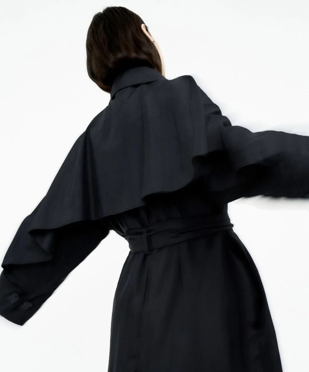 比如H型的风衣一般更适合不过于宽松或者是相对来说更加柔软的裤管,直筒版型风衣最容易显得利落又高挑,本身也是比较偏硬的面料,所以搭配拥有直挺裤腿的阔腿裤,更利于纵向延伸线条。