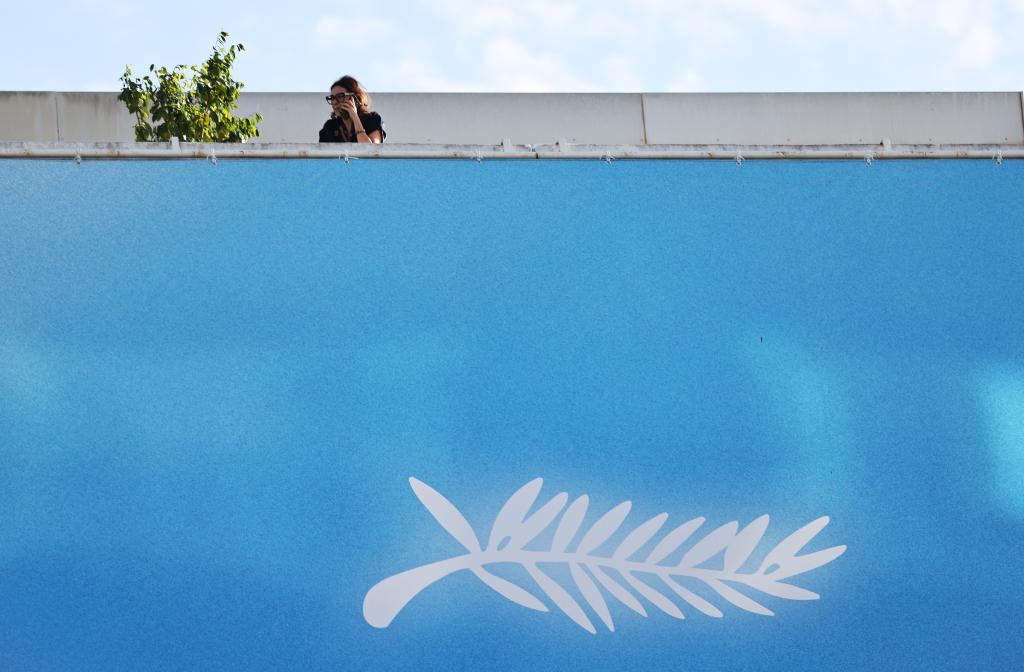 这是5月13日在法国南部小城戛纳拍摄的戛纳电影节的“金棕榈”标识。(新华社记者高静摄)