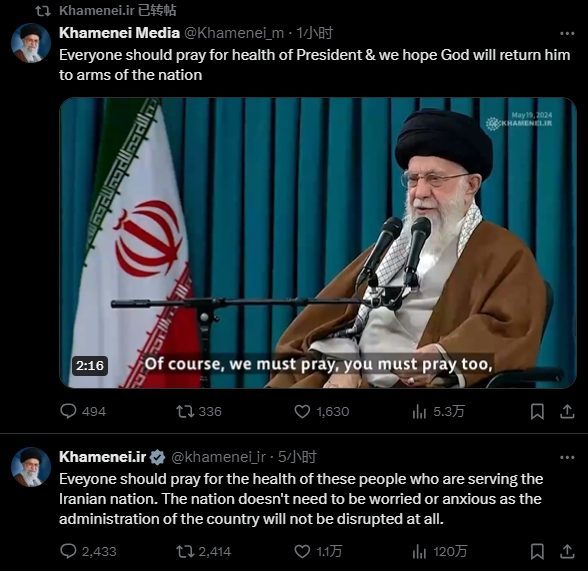 路透社19日最新报道引述一名伊朗匿名官员的说法称,“直升机坠毁后,莱希和外长阿卜杜拉希扬的生命受到威胁”。该官员说:“我们仍抱有希望,但从坠机现场传来的信息令人非常担忧。”