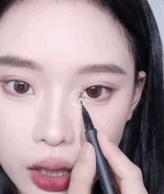 还可以顺便开下眼角,向下勾勒出眼角形状,并用白色的哑光高光作提亮,再补出卧蚕。