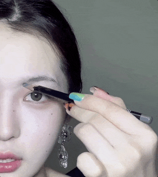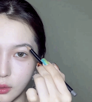 然后找到双眼皮褶皱消失的地方,将两点连成一条线,并在黑眼球外侧找到第三个点,填满里面的小三角,长度不要超过眉尾。