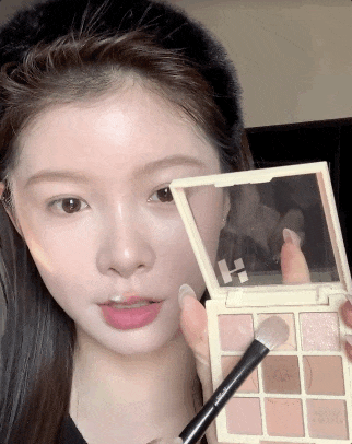 浅色先来打个底,再选主色铺满半个眼窝,并在眼睛后半段向上扫,带到下眼睑。