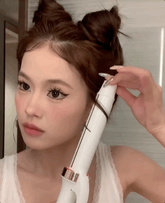 STEP 6:最后用粗一点的卷发棒卷鬓角碎发,烫出弧度更有俏皮灵动之感~
