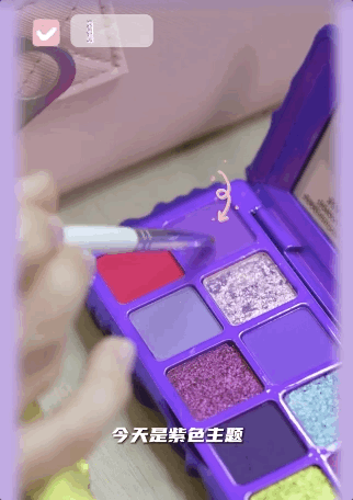 女明星cos版本的猫猫眼妆以粉紫色为主,但紫色容易显肿,大家也可以替换成安全的常用色系来做搭配。