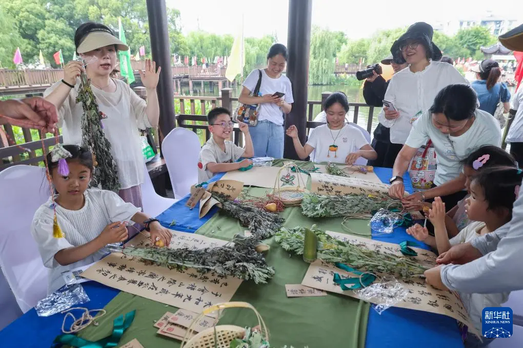 当日,浙江省湖州市吴兴区东林镇举办“庆端午 划菱桶”水乡端午趣味民俗活动,来自东林镇各村的村民们在泉益村参加了水乡划菱桶比赛、荷塘钓小龙虾、做艾草花束、包粽子等端午趣味民俗活动,在初夏时节呈现江南水乡特有的迎端午气氛。