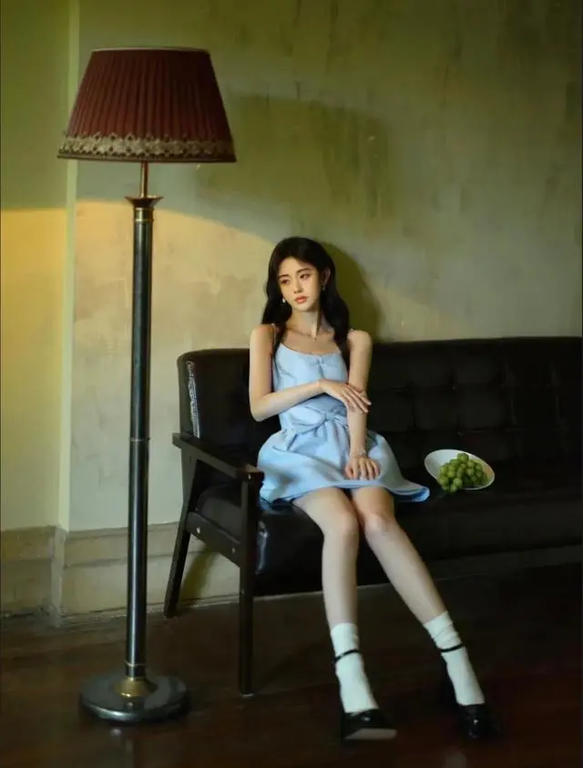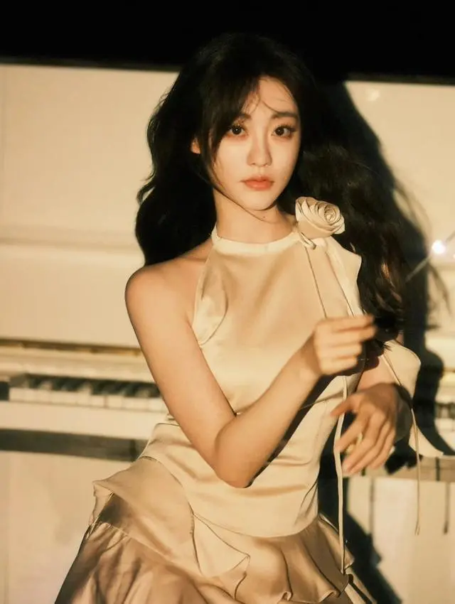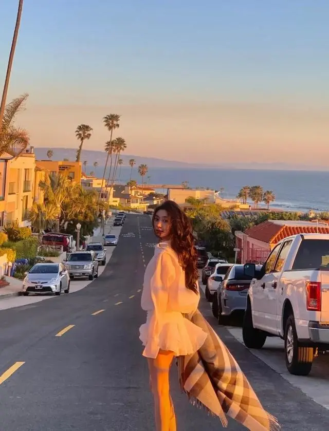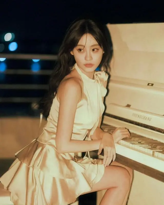 除此之外,在夜晚放烟花之时身着的一件带有光泽感的裙装,在灯光的映照下,裙装散发出的粼粼波光,这个造型可称作为营造氛围感的神。