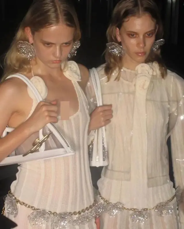 薄雾轻纱并不仅仅代表着梦幻,更是代表着一种神秘感。Alessandra Rich 2024春夏系列灵感来自被赋予进行女神特质的女孩们,在设计中采用带有光泽感的面料,并融入了朋克和金属元素,用设计表明女孩们是神秘的,也是潇洒的。