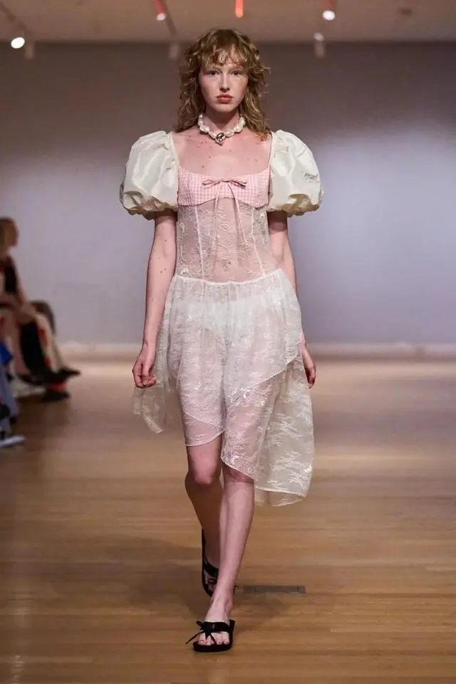 这种风格的核心在于细节之处的点缀,在设计中融入蝴蝶结、蕾丝、花朵、薄纱等元素,在设计中巧妙融合浪漫与奇思妙想,让每一个细节都透露着梦幻与轻盈,似如薄雾一般的朦胧感,诠释一种令人捉摸不透的全新少女美学风格。