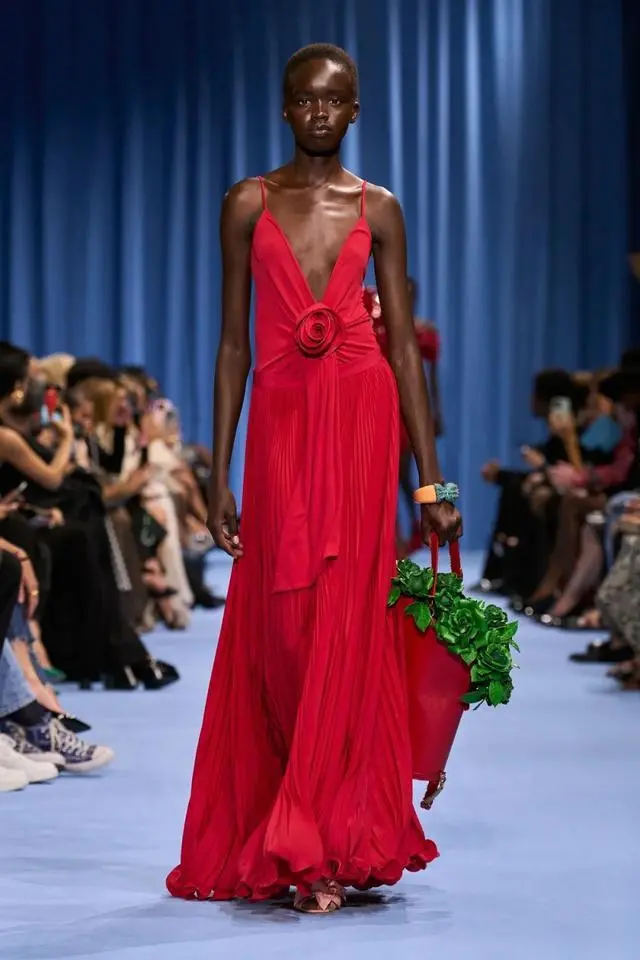 Balmain 2024春夏系列以“花园”为主题,讲述了一场与玫瑰花相遇,浪漫而热烈的春日邂逅,将浪漫与品牌基因中蕴含的力量感完美结合。玫瑰花以各种形式绽放于每一件作品中,或立体或印花形式呈现的玫瑰花,极致重工的短裙,展现出值得惊叹的创意与匠心独运。从成衣到配饰,从裁片到细节,随处可见的玫瑰花,它们或立体、或印花、或装饰,为时装注入了一抹独特的生命力。Olivier Rousteing说:“巴尔曼玫瑰不仅仅是一朵浪漫的玫瑰。还有韧性和力量。所以它是关于爱、关于色彩、幸福和快乐的。”这一季的设计不仅仅是一种艺术创作形式,更是一种独属于女性力量的表达。