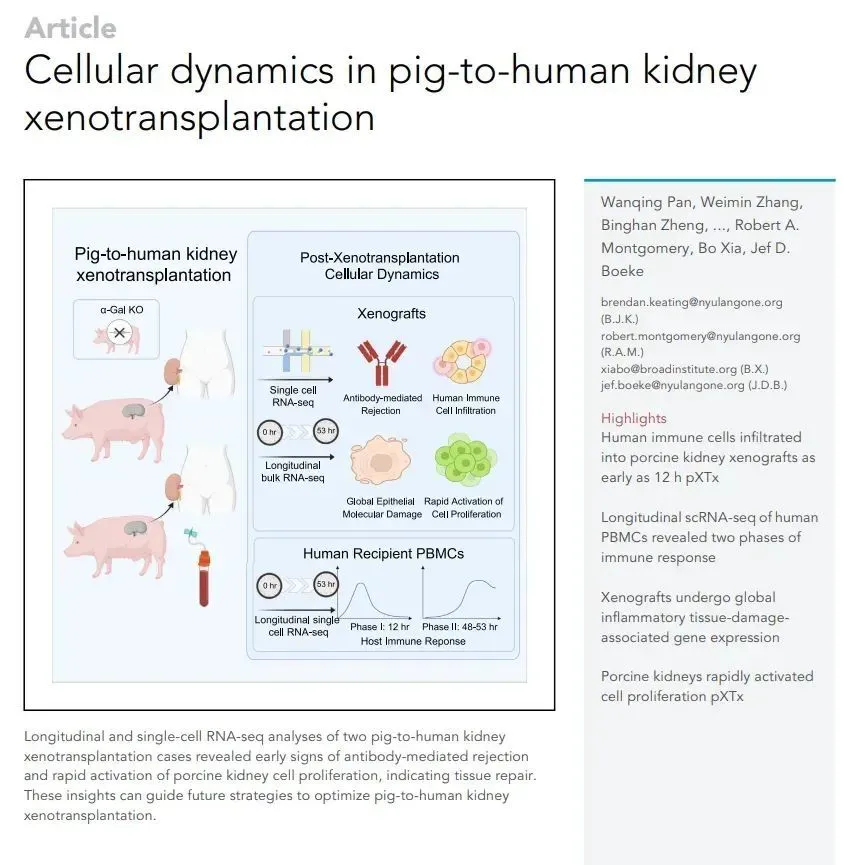 全球首例猪肾移植患者死亡后,治疗团队在 Cell 子刊 Med 发布了研究,探讨猪肾移植患者手术成功后却熬不过 2 个月的多组学及细胞学机制。