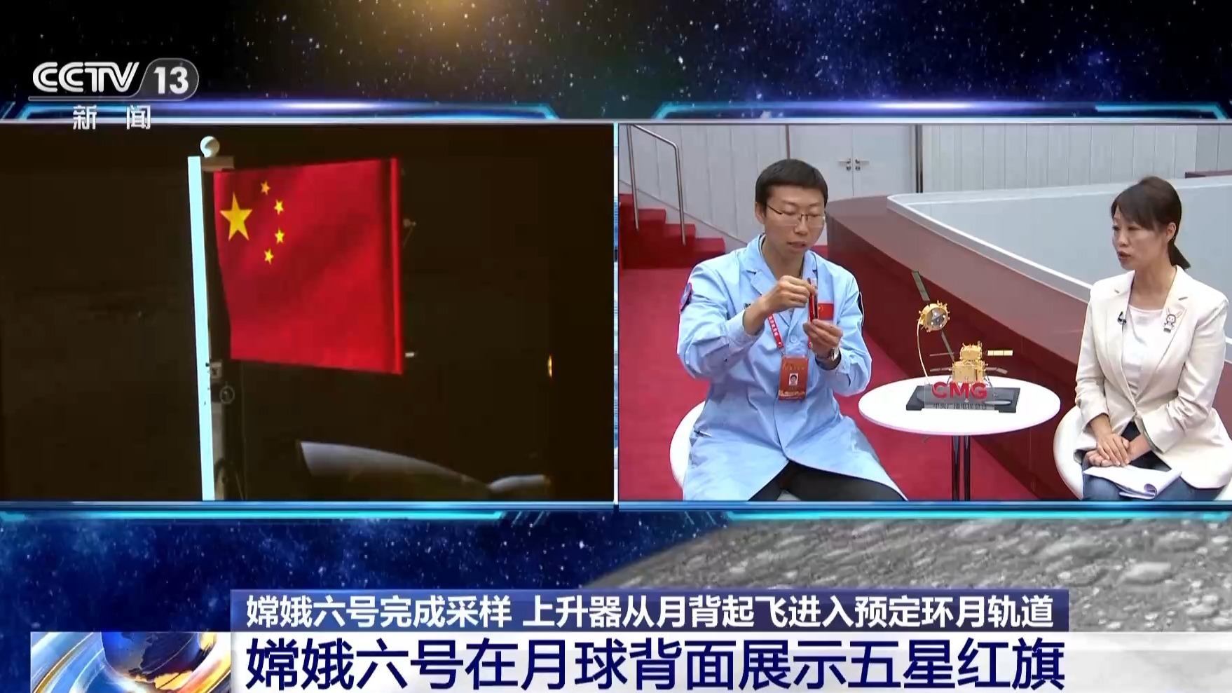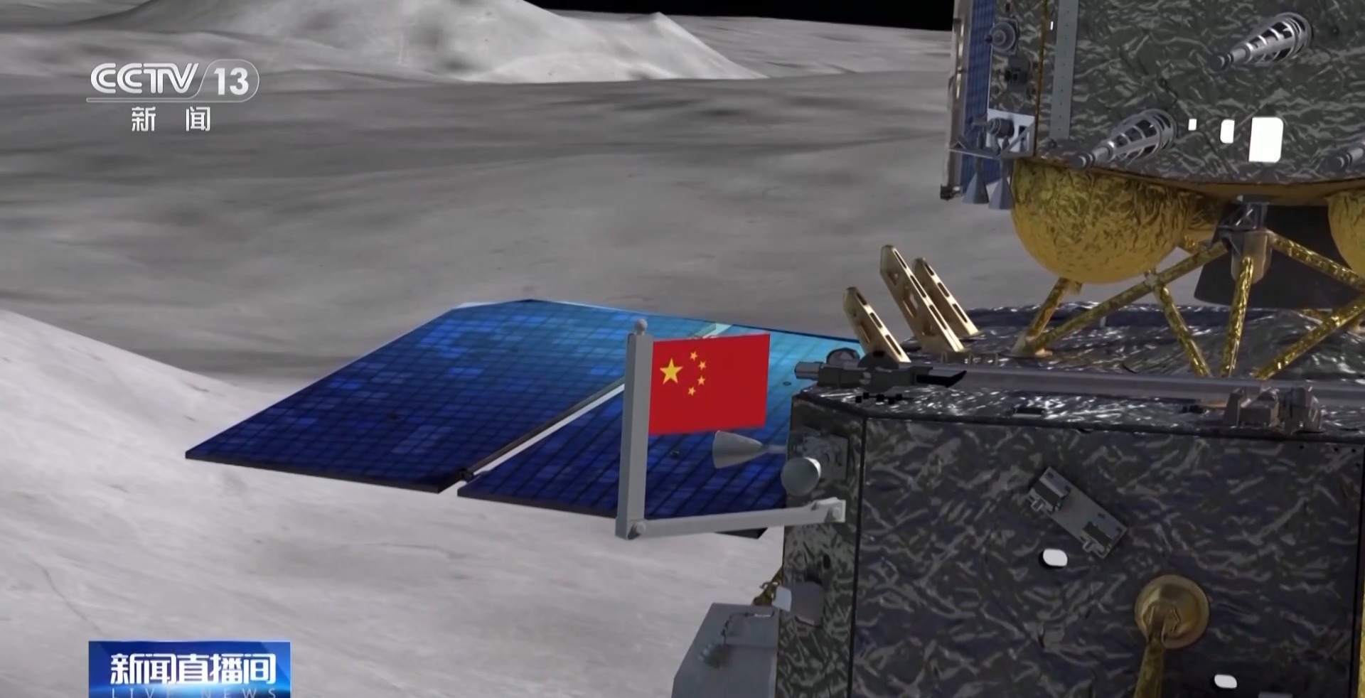 北京航天飞行控制中心荣志飞:这次也是一个创新,国旗是通过着陆器上的国旗展示系统来进行展示,在月球背面有一个国旗展开的过程。