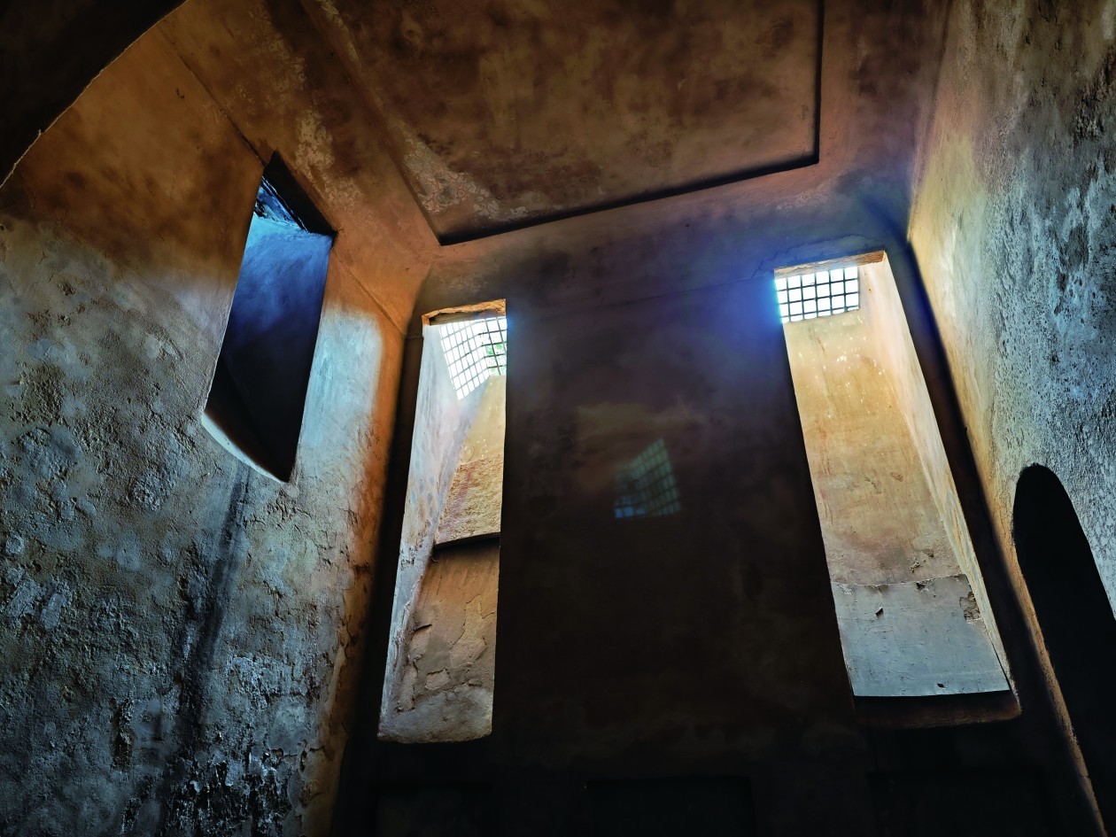 走到地下室尽头,是一个窗户,从窗户探出头,发现窗外正是那个深井。这个井也许是用来蓄水降温的,空气从上面流下来,经过井水的降温再从窗外进入屋内,正是最原始的水空调。重要的是,小屋虽然很深,但并不瘆人,想来不是地牢,毕竟莫克罗夫特当年可是作为兰吉特·辛格的欧洲客人住在这里的。至于为什么要修在地下?大概是为了避暑。