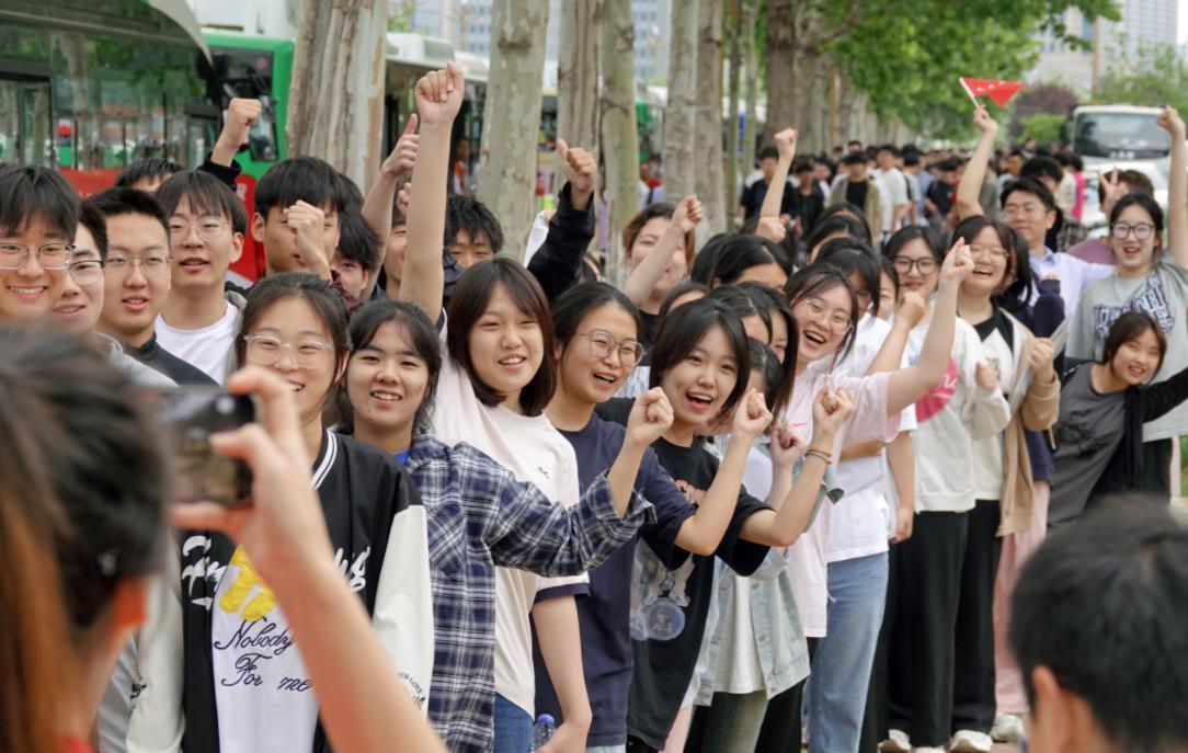 2024年6月7日,高考考生在山东烟台莱山一中考点外合影留念(ICphoto)