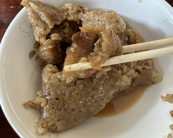 在牛肉馆了,还尝试了泉州特色的肉粽。里面带着麻油的香气,馅料有猪肉、莲子、干贝等,整体非常油润,比较容易腻。