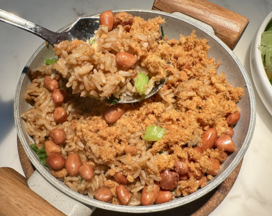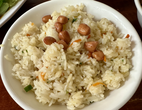 与之搭配的,选了咸饭。泉州的咸饭是先将食材炒过,再来煮,上面会撒些花生豆点缀。咸饭单吃,没有什么味道,但很适合搭配牛肉。