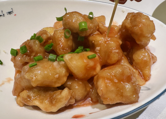 在还没去福州前,就心心念念了许久荔枝肉。我一直以为荔枝肉是类似菠萝咕咾肉一样,用荔枝来炒菜。结果上菜后,我一整个大傻眼。荔枝肉,原来是说肉的形状像荔枝,真的是和水果荔枝没有一丁点儿的关系!做法和口感吃起来,与东北菜里的锅包肉类似。猪肉裹粉油炸后,再与番茄酱做底的酱汁翻炒。