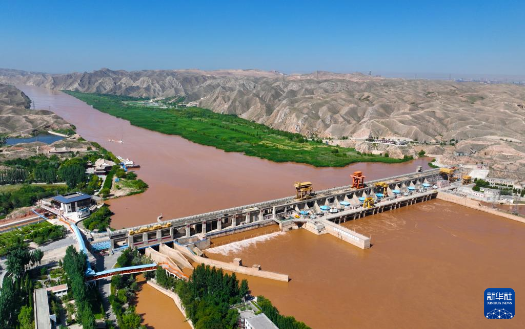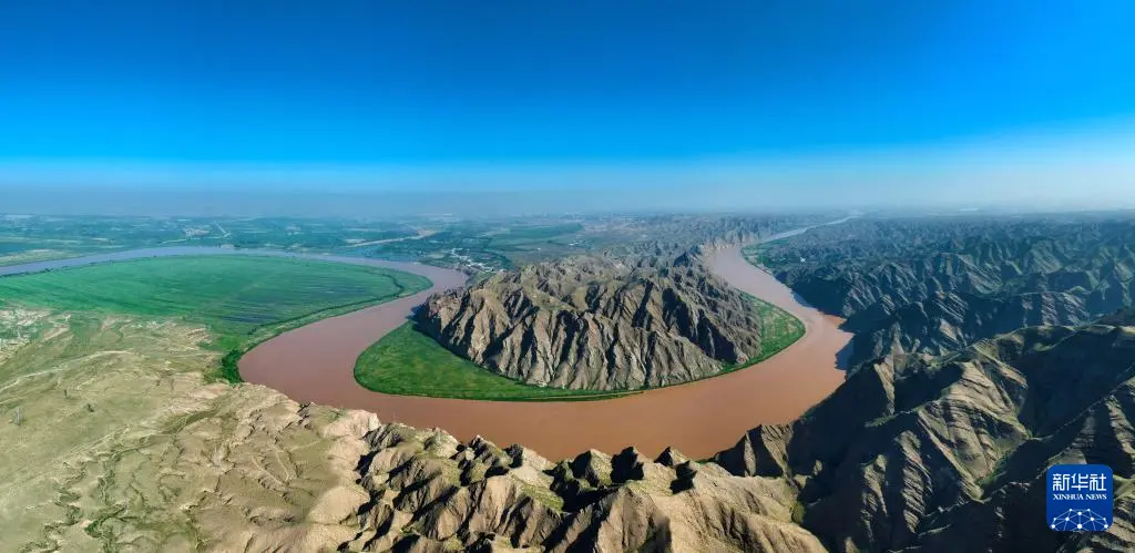 俯瞰位于宁夏回族自治区吴忠市青铜峡境内的黄河宁夏段(6月23日摄,无人机照片)。