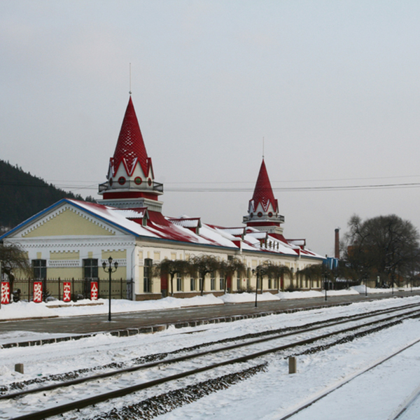横道河子是一座百年古镇,一百年前,这里是俄罗斯人的天堂。俄罗斯人在这里留下太多印记,包括中东铁路遗址。而我们现在看到的横道河子站,亦是典型的俄罗斯建筑艺术风格。双层白色站楼,两座砖红色塔楼立在两旁,目之所及,独树一帜,夺人眼球。在远方群山的掩映之下,给人以莫名的欣喜。这座西洋画般的小站,在这乐园一样的小镇上扮演着惊艳过客的角色。