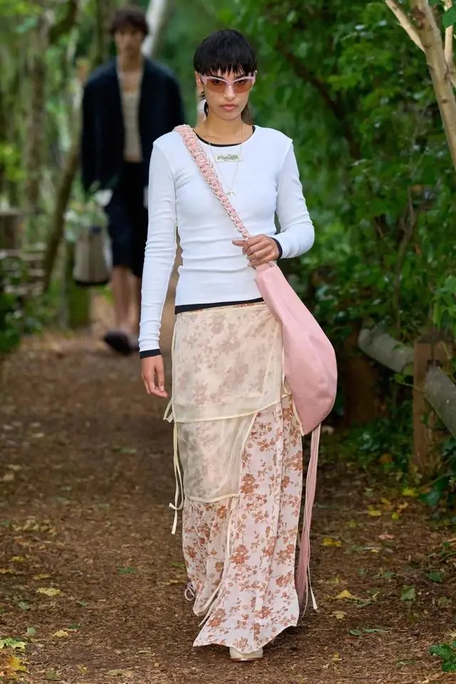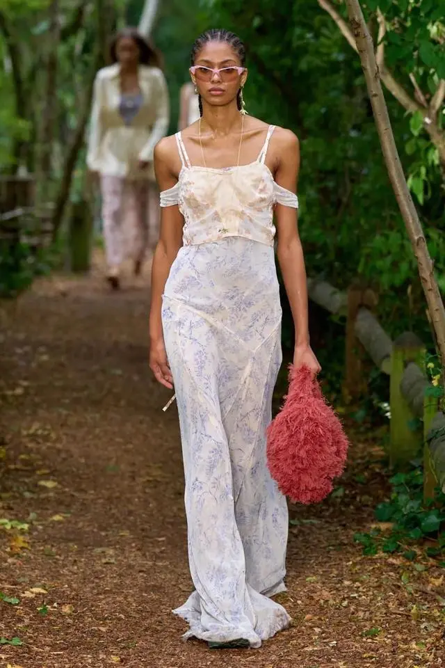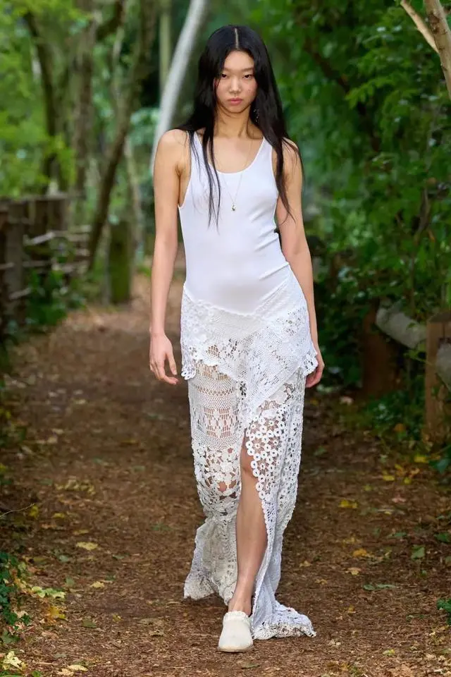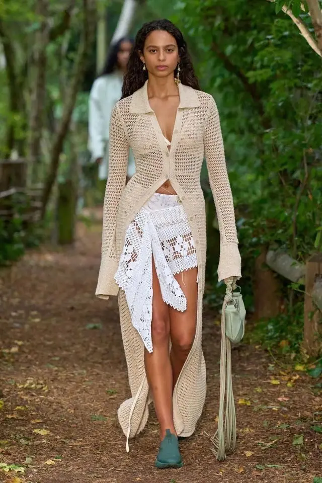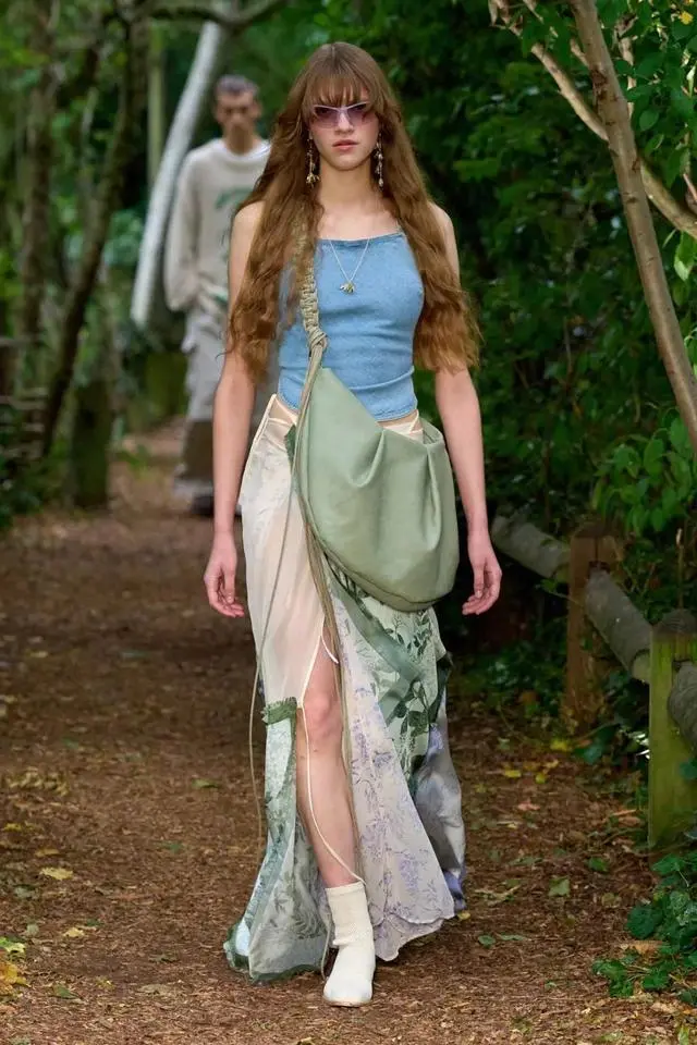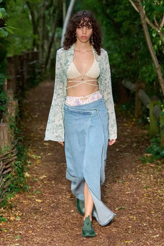 HOLZWEILER 2024春夏系列大秀将地址选在卡姆利街自然公园中,原本的工业煤场在此时幻化成一个野生动植物的天堂。在这里,感受着鸟语花香与蜂鸣蝶舞,这里是一个世外桃源,也是在诉说每个人心里存在的那个乌托邦。在服饰上依旧延续经典的北欧风格,在干净、简约、大气的风格之上,印花和镂空装饰赋予了服饰勃勃生机。灵动和飘逸的版型,是北欧风情和田园风格的完美结合,营造轻松和愉悦的氛围感。