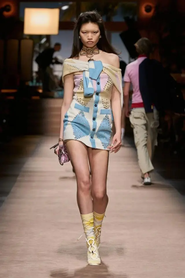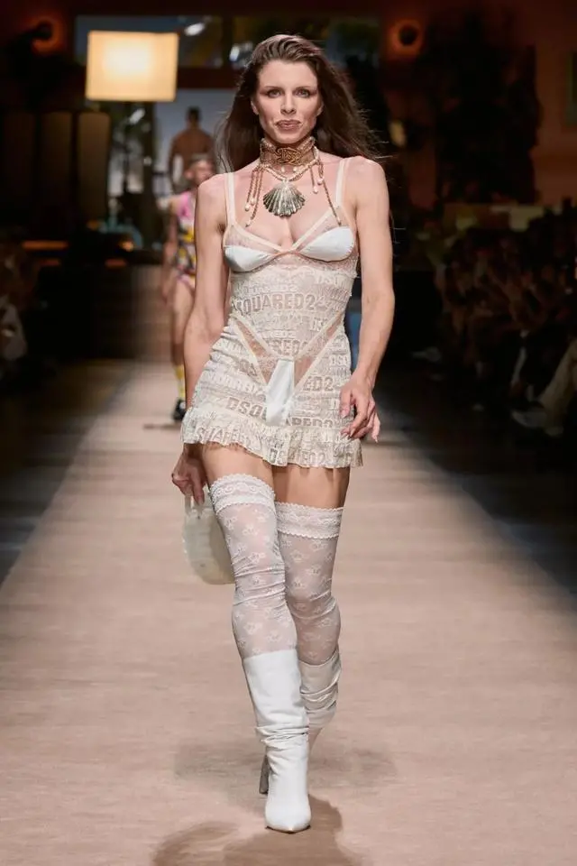 DSQUARED2 2024春夏系列充满了度假和随性的意味,热辣的短裙搭配混搭的外套,整个造型透露着一种轻松,既可以漫步于都市之中,下一秒又仿佛置身于夏日的海滩边。在视觉效果之中感受到一股温热的海风,将轻松与有态度的生活方式瞬间拿捏。