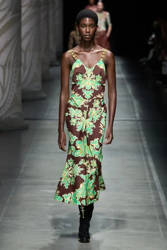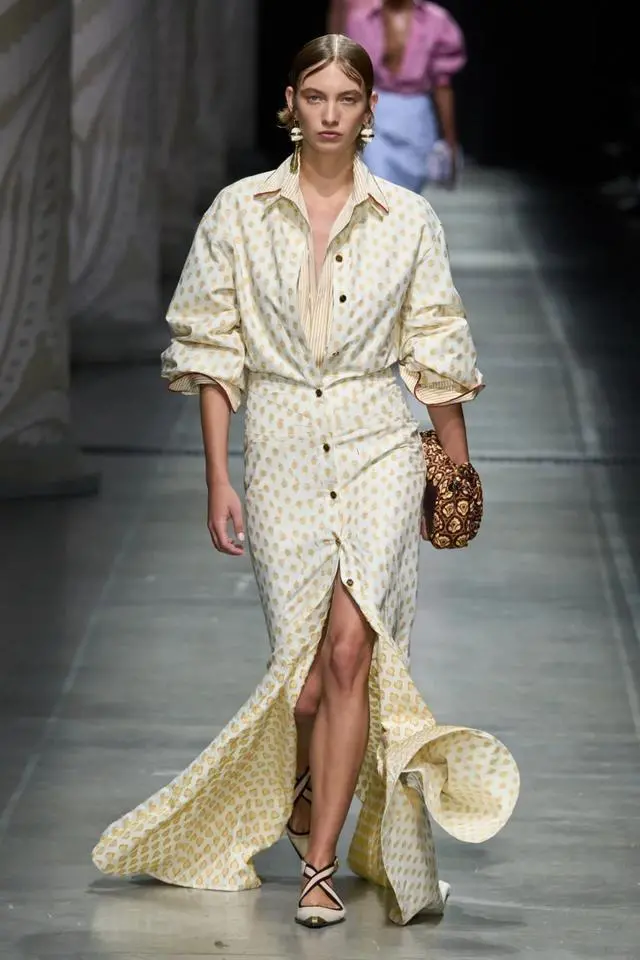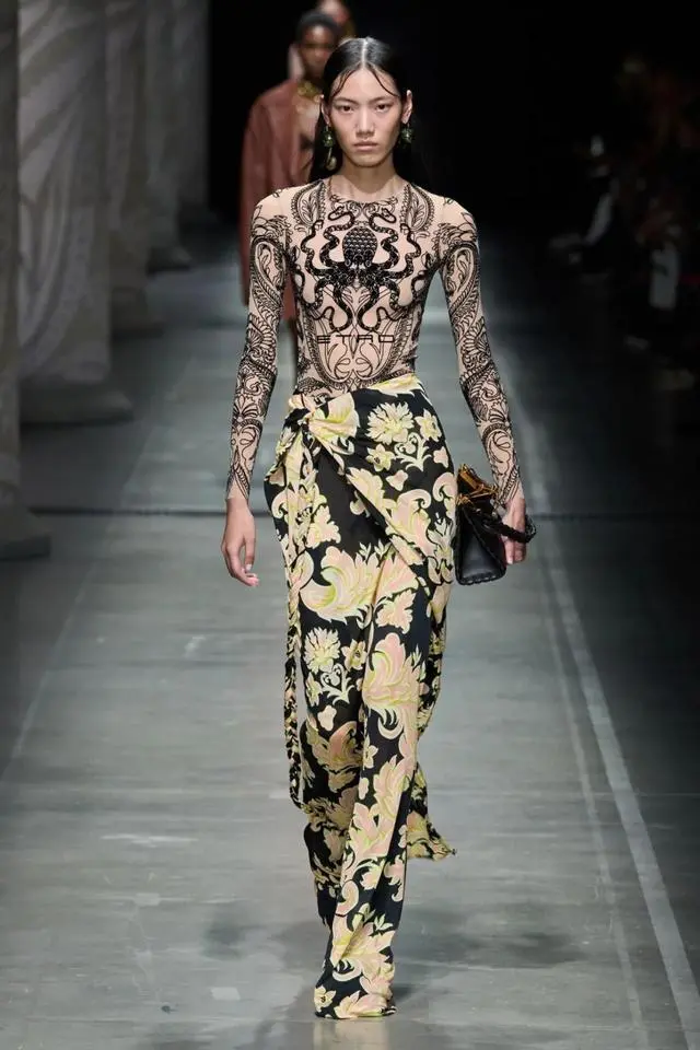 ETRO 2024春夏系列则是让人进入一个幻境国度,一切以想象为始编织出一个美丽幻境,试图在都市中寻找神秘文明的遗迹。让人在都市中,也可置身于古老的文明之中,所看到的一切都是那么的宏大,在此之上还能找到一些都市的痕迹,多么的符合都市度假风的精髓。