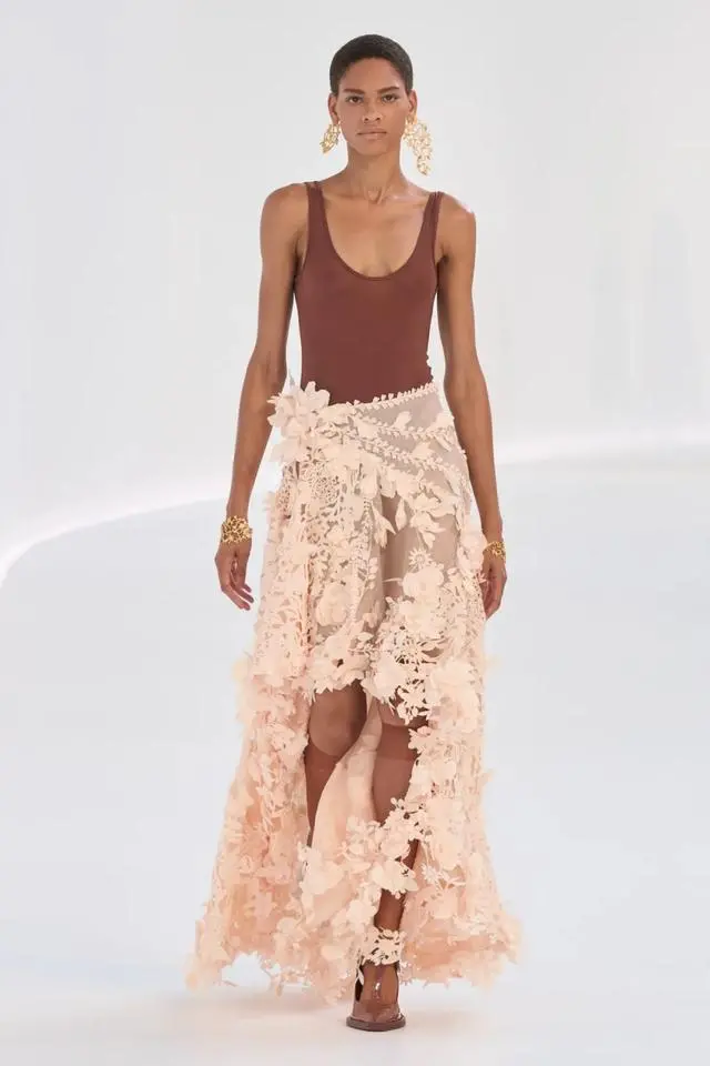ZIMMERMANN 2024春夏系列整体的氛围是“轻松和热辣”的,通过多种艺术形式从大自然之美中撷取灵感。将丰富多彩和充满趣味的颜色与植物结合在一起变成主系列印花,3D印花的生动和飘逸感十足的版型相结合,多的是对大自然的崇敬与热爱。