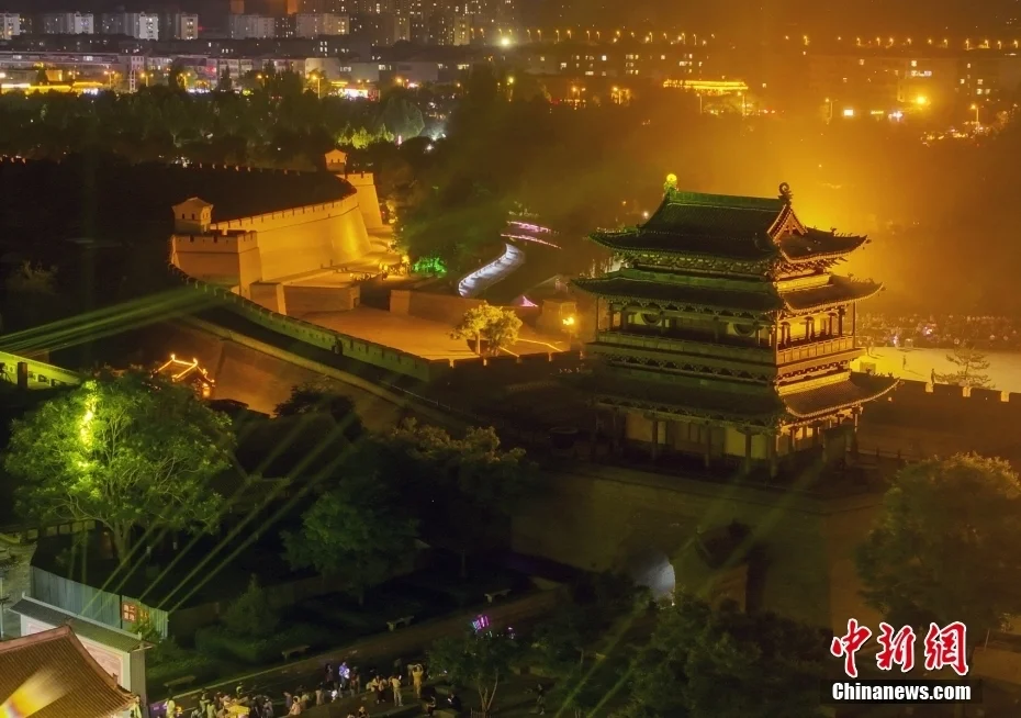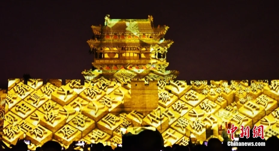 平遥古城迎熏门灯光秀表演。图/视觉中国