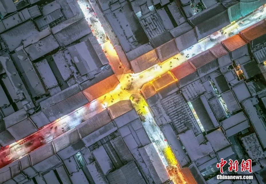 春节期间,平遥古城灯火通明、喜庆祥和,游客漫步古街游览打卡留念,感受浓浓的年味。图/视觉中国