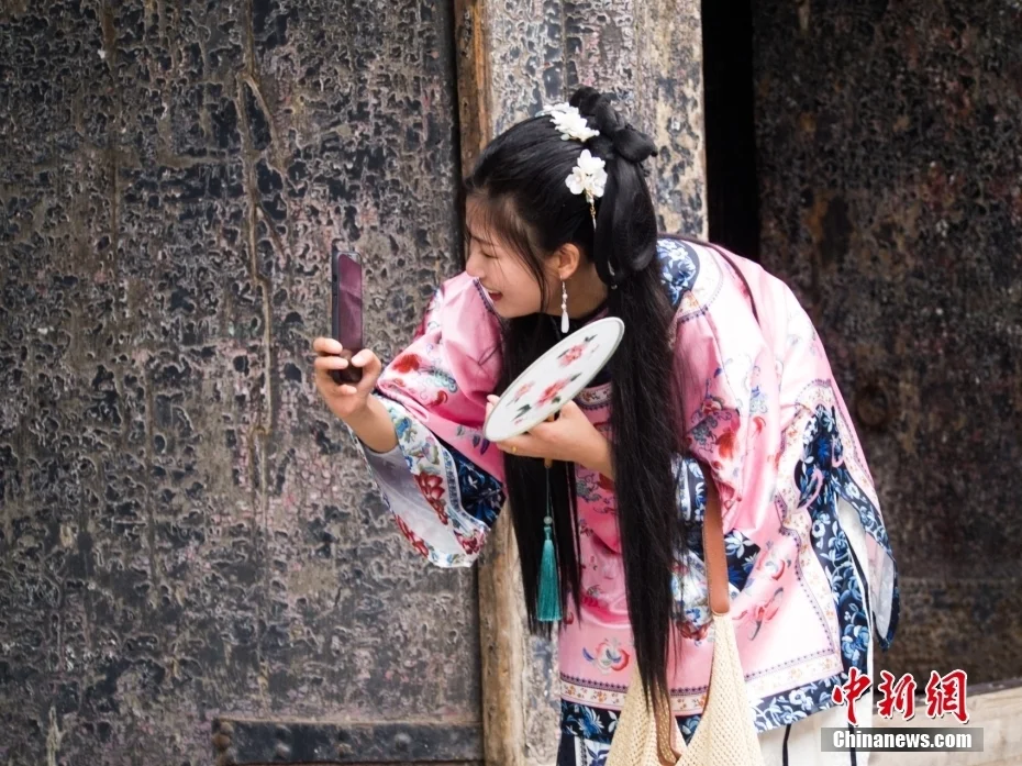 在一些热门景点,随处可见身着汉服、衣袂飘飘的游客,旅游热带动了汉服热,也在不知不觉中催生出汉服旅拍行业的新业态。图为旅客穿汉服在平遥古城游览。图/视觉中国