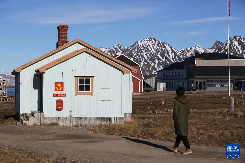 6月21日,在挪威新奥勒松,一名游客准备参观地球最北邮局。