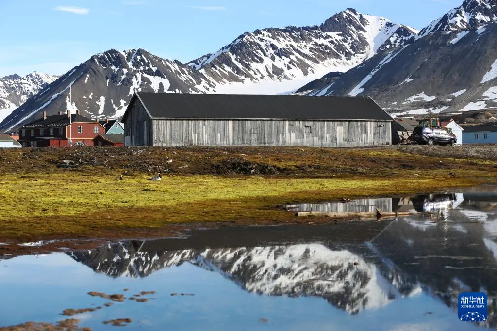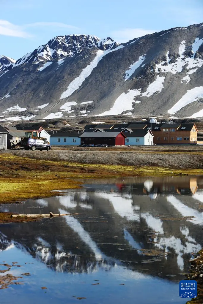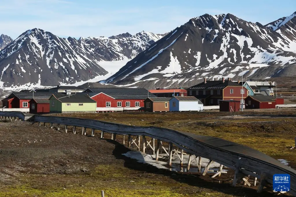 这是6月21日在挪威新奥勒松拍摄的小镇一角。