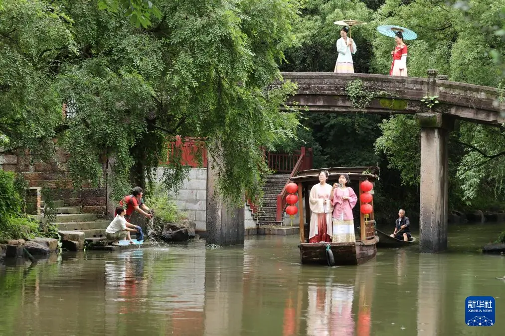 6月24日,游客在德清县钟管镇蠡山村普济桥游玩。