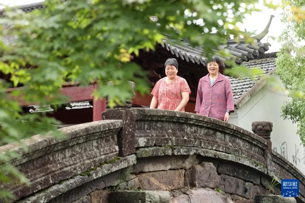 6月26日,村民在德清县新安镇舍北村万善桥上散步。