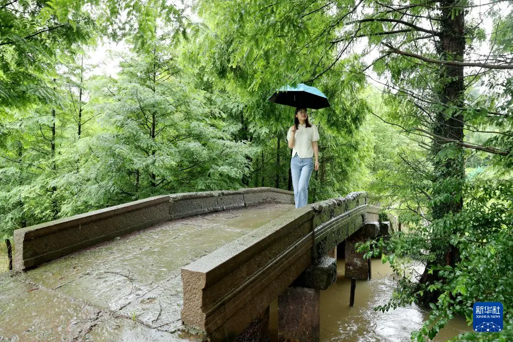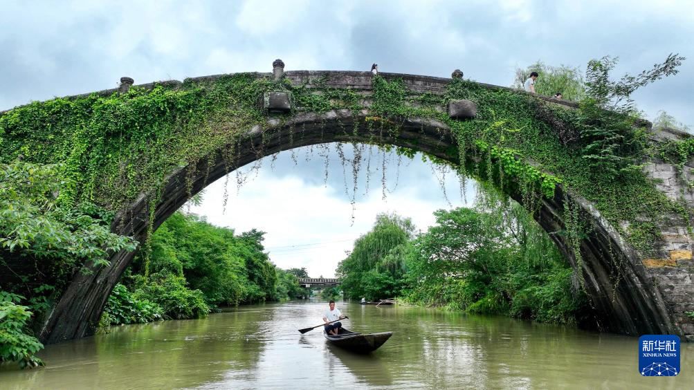 6月25日,村民行走在德清县下渚湖街道下杨村永安桥上。