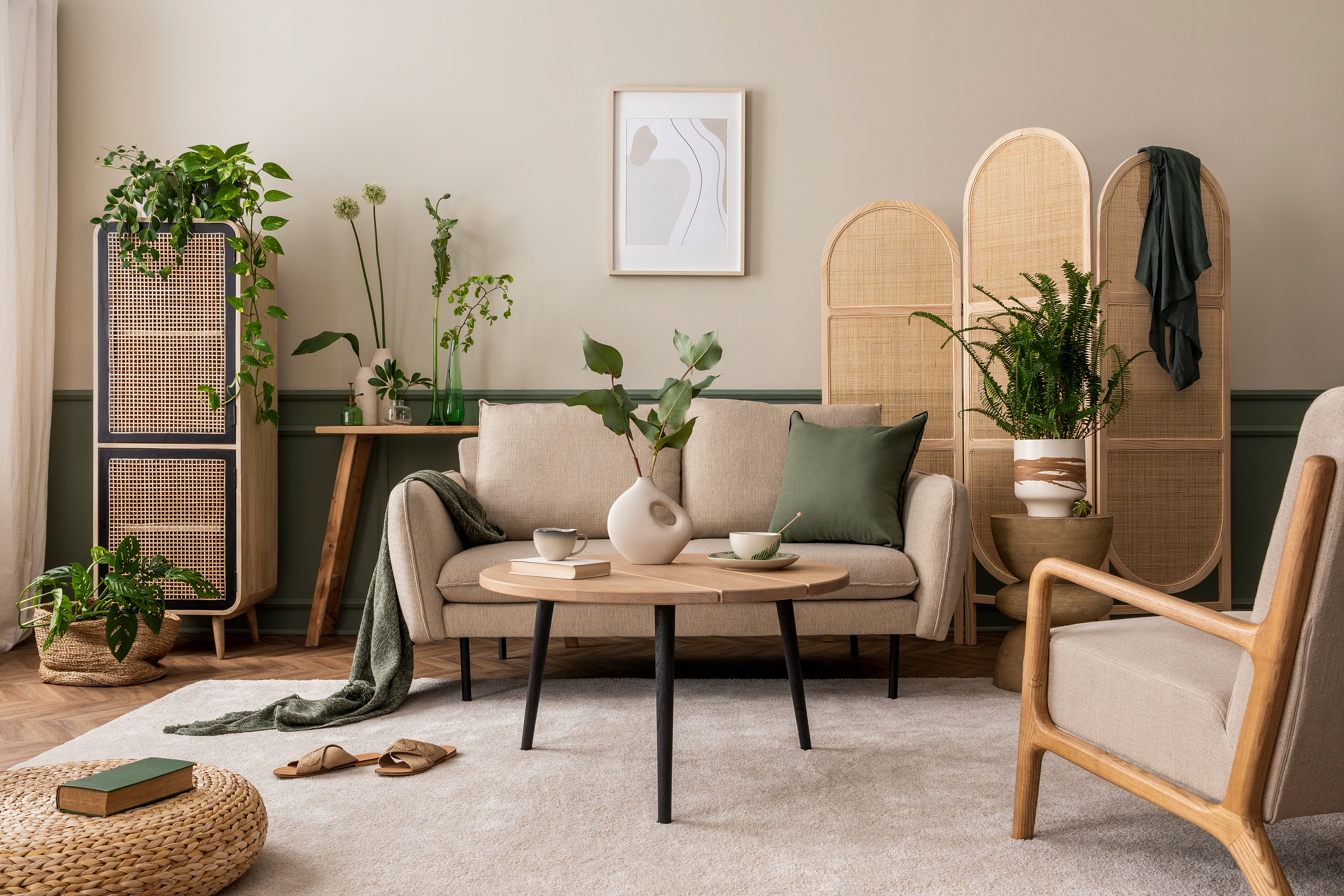 六月的小美好,是通过使用编织物、天然木材和有机材料实现的,比如柳条、藤条、竹编和棉麻织物,增添室内的自然气息和温馨感。