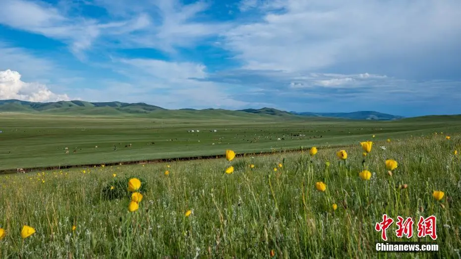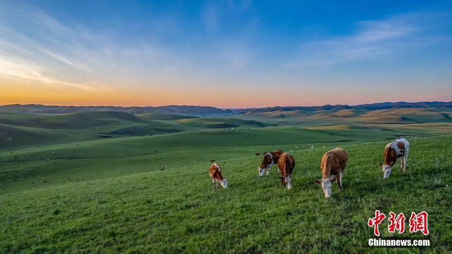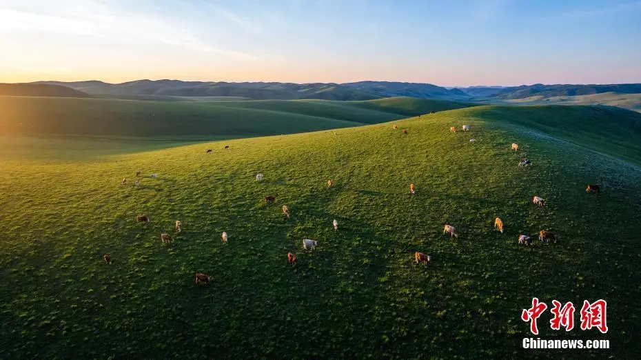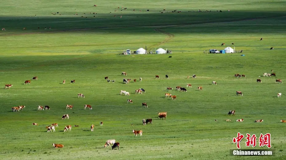 近日,牛羊点缀在如画的扎鲁特山地草原上。扎鲁特山地草原位于内蒙古自治区通辽市西北部扎鲁特旗巴雅尔吐胡硕境内,距通辽市200公里。这里曾是辽代誉州古城将士们驯养战马的地方,又名军马场。这里水草丰美、风光旖旎,总面积达3万余亩。青格乐 摄