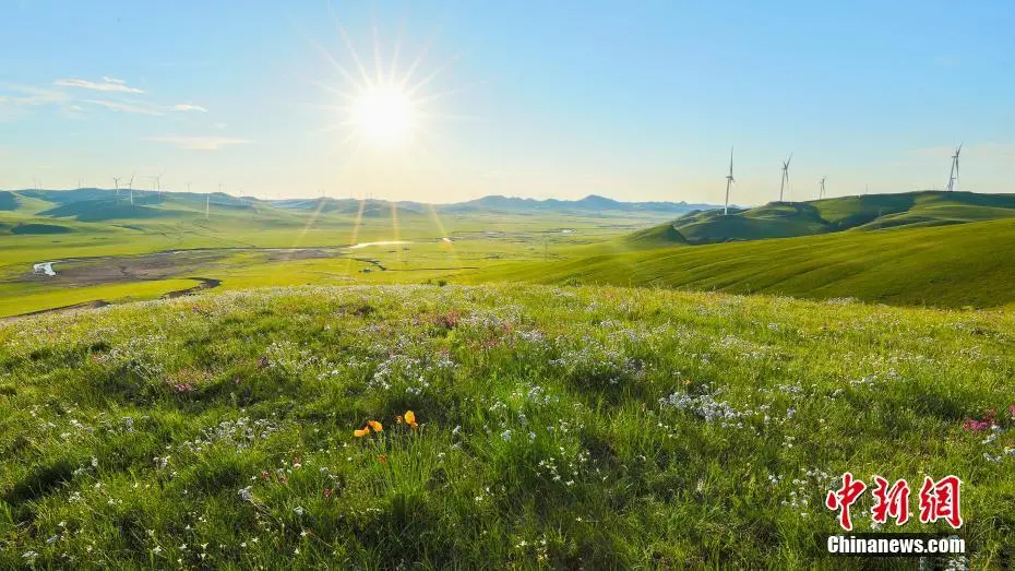 近日,扎鲁特山地草原上,碧绿草场如一块无边无际的地毯。扎鲁特山地草原位于内蒙古自治区通辽市西北部扎鲁特旗巴雅尔吐胡硕境内,距通辽市200公里。这里曾是辽代誉州古城将士们驯养战马的地方,又名军马场。这里水草丰美、风光旖旎,总面积达3万余亩。白敖敏 摄