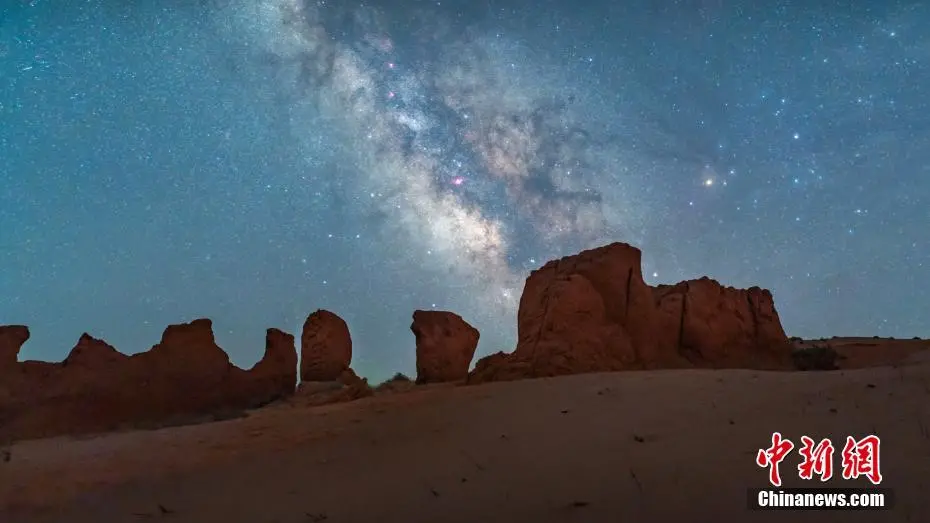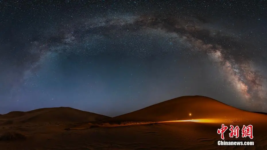 近日,巴丹吉林沙漠的夜晚,璀璨的星空如同梦幻的画卷。仲夏之夜,摄影爱好者来到巴丹吉林沙漠,用镜头记录了大漠戈壁如梦如幻的璀璨星空。巴丹吉林沙漠位于内蒙古自治区阿拉善盟,是中国第三大沙漠,世界第四大沙漠。巴丹吉林沙漠不仅是一个自然的奇观,也是一个重要的旅游目的地,以其独特的魅力吸引着来自世界各地的游客慕名前来。刘飞燕 摄