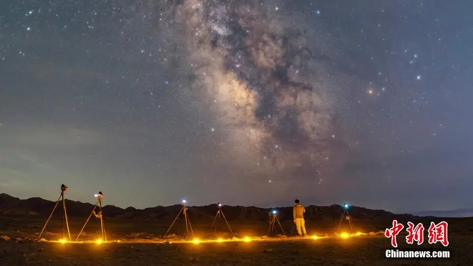 近日,巴丹吉林沙漠夜空,璀璨的星星如同镶嵌在夜幕上的明珠,闪烁着耀眼的光芒。仲夏之夜,摄影爱好者来到巴丹吉林沙漠,用镜头记录了大漠戈壁如梦如幻的璀璨星空。巴丹吉林沙漠位于内蒙古自治区阿拉善盟,是中国第三大沙漠,世界第四大沙漠。巴丹吉林沙漠不仅是一个自然的奇观,也是一个重要的旅游目的地,以其独特的魅力吸引着来自世界各地的游客慕名前来。刘飞燕 摄