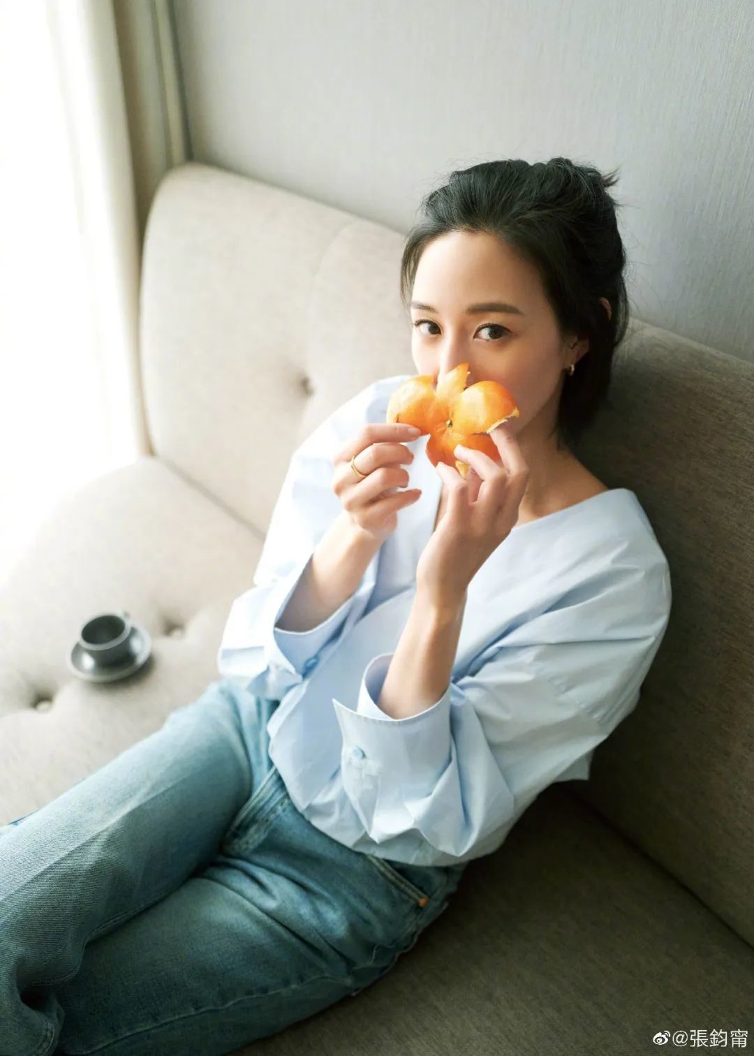 短发女生也不用担心上不了逗号丸子这班车,像张钧甯这样徒手将发束向后抓之后扎个小丸子,再用小抓夹固定支棱起来,就能让发型饱满,整体看起来松散间不失清爽感。